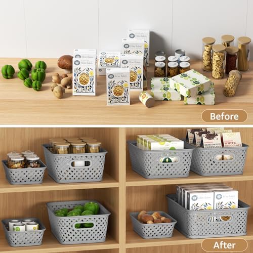 Each basket features sturdy handles for easy transport, making it simple to move your items from room to room. The spacious design allows for ample storage, accommodating everything from toys and books to office supplies and craft materials. The chic grey color complements any decor, ensuring that your organization efforts look as good as they function.