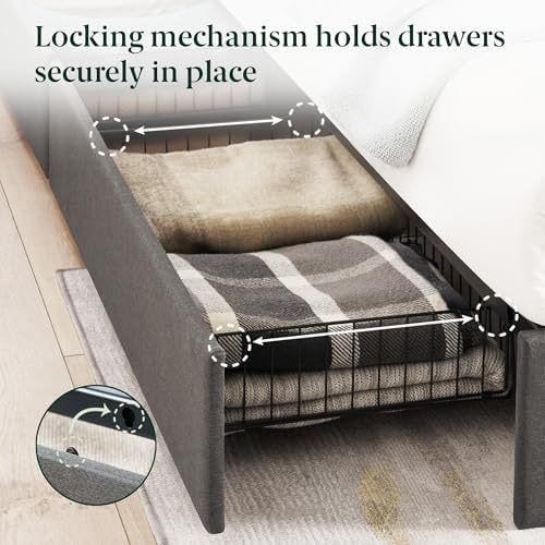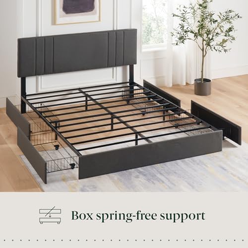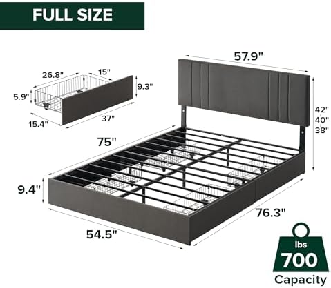Zinus Billie Platform Bed Frame, Four Underbed Storage Drawers, Height Adjustable Headboard, Upholstered Style, Full